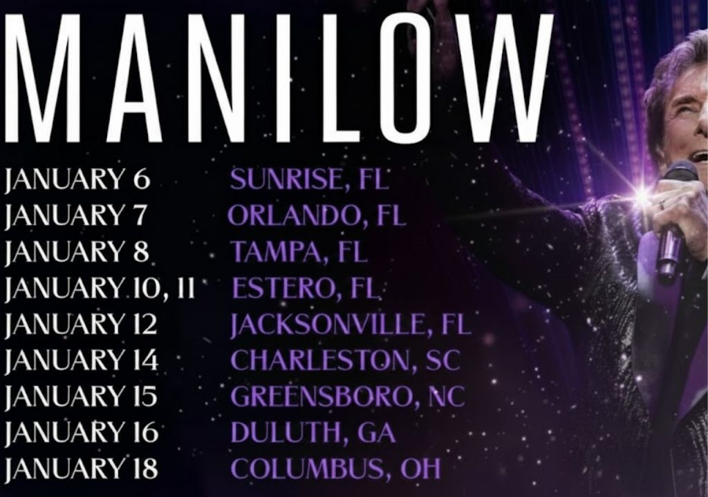 The newly revealed dates begin on January 6 in Sunrise, Florida, at the Amerant Bank Arena. From there, Manilow will bring his final performances to Orlando, Tampa, Estero, Jacksonville, Charlotte, Greensboro, and Duluth, before concluding the limited run on January 18 in Columbus, Ohio, at Nationwide Arena. These concerts are being billed as his final appearances in each of these cities.