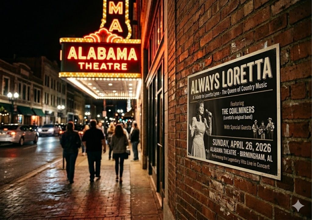 The Alabama Theatre, a 1927 “Showplace of the South,” provides a regal, velvet-lined acoustic chamber for a sound born in the rugged dirt of Butcher Hollow. On 04/26/2026, the silence left by the matriarch of country music will be filled by the very men who stood in her shadow for decades. “Always Loretta” is not a standard cover show; it is a sonic seance. The Coalminers, Loretta Lynn’s longtime touring band, carry the muscle memory of five decades of honky-tonk history in their fingertips. In Birmingham, under the glow of the theatre’s historic marquee, the technical precision of their arrangements will meet the emotional weight of a catalog that redefined the American woman’s narrative. This performance marks a critical juncture in the institutionalization of Lynn’s artistry, moving from the personal to the perennial in a city synonymous with Southern resilience.