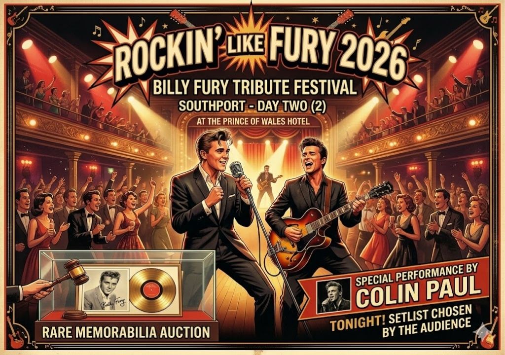 On this Saturday, March 28, 2026, the Prince of Wales Hotel in Southport has transitioned from a Victorian landmark into a bustling marketplace of collective memory. We are currently in the high-noon of Day Two of “Rockin’ Like Fury 2026,” and the demographic energy is palpable. While the coastal breeze outside remains a steady 51°F, the interior ballroom has become a crucible of rock-and-roll reverence. Fans move with a sense of purpose between continuous tribute stages and the high-stakes silence of the memorabilia wing. This is not merely a weekend of imitation; it is an investigation into the enduring fiscal and emotional value of a man who once personified the pinnacle of British cool. As the sun dips toward the Irish Sea, the anticipation for tonight’s fan-voted finale underscores a unique shift: the audience is no longer just observing history; they are actively curating it.