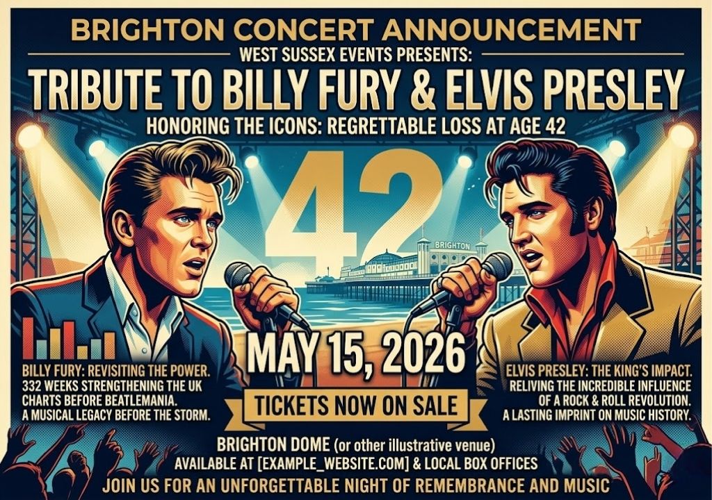 As the twilight settles over the English Channel on 05/15/2026, the coastal town of Littlehampton will transform into a high-fidelity sanctuary for the legends of rock ‘n’ roll. At the Windmill Theatre, the atmosphere is expected to be electric, with the evening temperature lingering at a steady 58°F. This is no ordinary tribute; it is a clinical exploration of a historical coincidence that has haunted musicologists for decades: the untimely passing of both Billy Fury and Elvis Presley at the age of forty-two. For the ticket-holders gathered on this Friday night, the show represents a sophisticated reconstruction of a vanished era. From the Mersey to Memphis, the production aims to recapture the visceral magnetism of the early 1960s, a time when the leather-clad rebellion of the British youth culture found its soul in the soaring, vulnerable melodies of its favorite son, Ronald Wycherley.